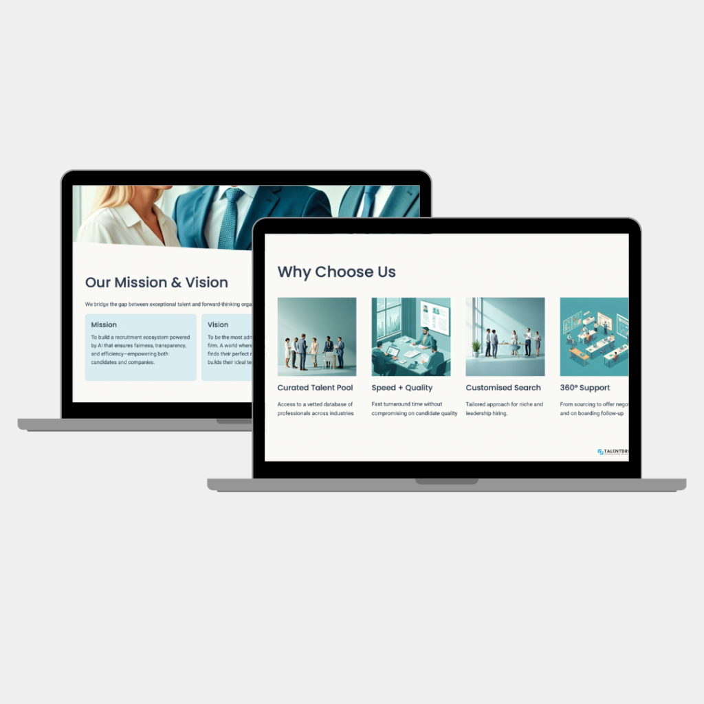 We transformed Talentbridge’s value proposition into a compelling visual story. This corporate presentation moves beyond slides to become a persuasive narrative tool.