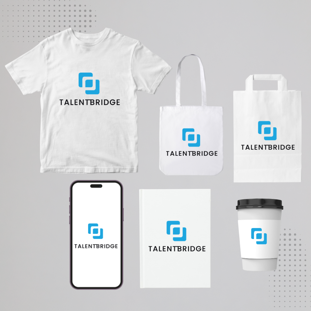 We crafted a complete brand identity for Talentbridge, featuring a custom logo that visualizes connection. This elegant system was extended to sharp business cards and essentials.